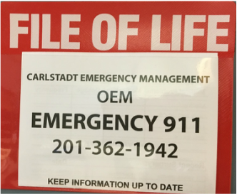 File of Life Cards are magnetic envelopes that contain critical personal health information that can be critical to first-responders in an emergency situation. Emergency personnel knows to look for them. When patients are unable to, File of Life Cards can speak for them. They are available for free to all residents at Borough Hall.
